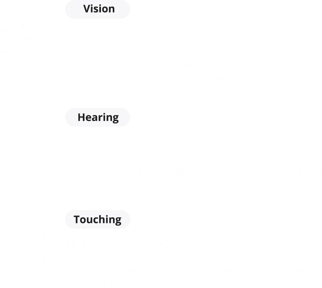 TX Ultimate integrates LED light, speaker and built-in motor. Pressing it can trigger the light transition, sound transition, and panel vibration at the same time, bringing a more futuristic trigger feedback.